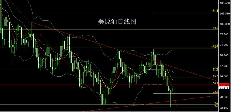 昨日美原油市场早盘开盘在80.205的位置后行情回踩79.767的位置后行情震荡拉升,日线最高触及到了本轮回落斐波那契的38.2压力82.311的位置后行情冲高整理,日线最终收线在了80.986的位置后行情以一根上影线很长的类倒锤头形态收线,而这样的形态收尾后,今日的行情早盘如果先拉升给出82附近尝试短空止损82.4,下方目标看80.7和80.3离场反手做多。