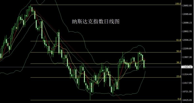 昨日纳斯达克指数早盘开盘在11796.25的位置后行情小幅拉升给出11832.23的位置后行情震荡回落,日线最低给到了11483.02的位置后行情整理,日线最终收线在了11552.86的位置后行情以一根下影线稍长的大阴线收线而这样的形态收尾后,今日的行情11650空止损11700下方目标看11483,跌破看11430支撑点准备多。