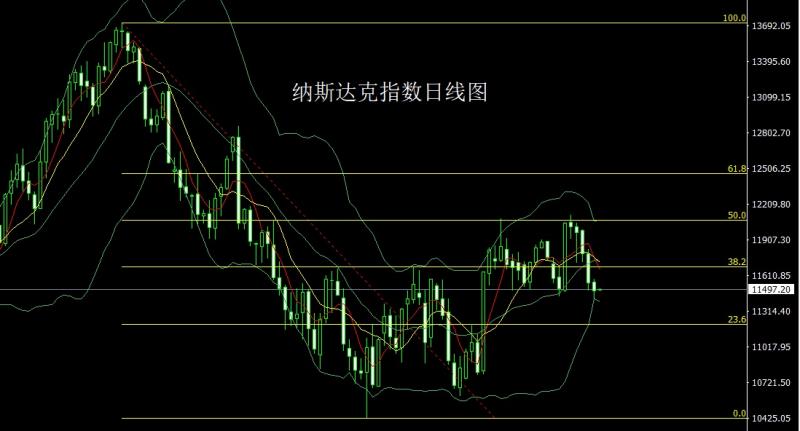 昨日纳指早盘开盘在11557.09的位置后行情小幅拉升给出11582.49的位置后行情展开回落,日线最低给到了11405.22的位置后行情受到日线级别布林下轨支撑小幅拉升,日线最终收线在了11484.3的位置后行情以一根下影线较长的中阴线收线,而这样的形态收尾后,今日的行情如果先回落给出11420多止损11385,目标看11520和11580-11630.