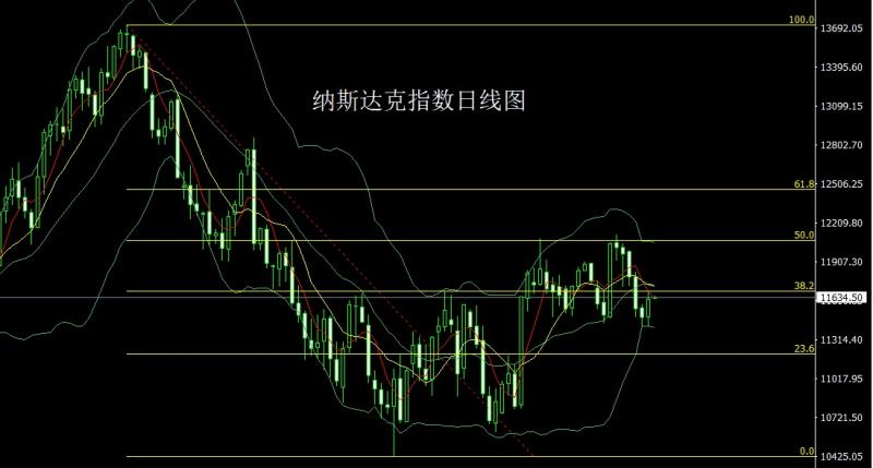 昨日纳斯达克指数早盘开盘在11491.48的位置后行情先回落给出11417.66的位置后行情震荡拉升,日线最高触及到了11674.45的位置后行情整理,日线最终收线在了11625.58的位置后行情以一根下影线稍长于上影线的大阳线收线,而这样的形态收尾后,日线阳包阴,今日的回踩依旧多,点位上,昨日11420的多减仓后止损跟进在11425持有,今日的行情11540多止损11500,目标看11675.破位看11720和11780-11800.