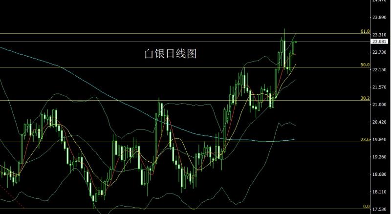 昨日白银市场早盘开盘在22.683的位置后行情先回落给出20.523的位置后行情展开拉升过程,日线最高触及到了23.217的位置后行情整理,日线最终收线在了23.045的位置后行情以一根上下影线很长的大阳线收线,而这样的形态收尾后,今日的行情22.85多止损22.65,目标看23.25.破位看23.5和23.7.