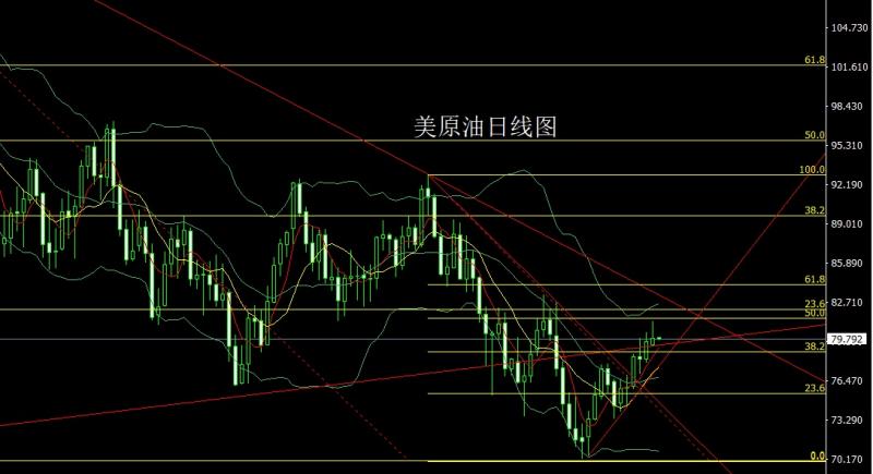 昨日美原油市场早盘低开在79.353的位置后行情直接拉升,日线最高触及到了81.179的位置后行情尾盘回落,日线最低给到了79.157的位置后行情受到支撑拉升,日线最终收线在了79.851的位置后行情以一根上影线极长的倒锤头形态收线,而这样的形态收尾后,今日的行情早盘如果先回落给出78.85多止损78.4目标看80和81-81.3