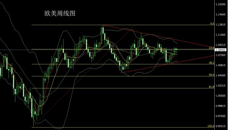 欧美市场上周开盘在1.08678的位置后行情先拉升给出1.08852的位置后行情震荡回落周线最低给到了1.08038的位置后市场宽幅震荡,周线最终收线在了1.08460的位置后周线以一根高位吊颈信号,本周市场有调整需求,点位上,上周1.08750的空减仓后止损跟进在1.08600持有,今日的行情1.08250多止损1.08100,目标看1.08700和1.08900.