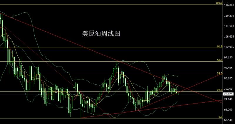 美原油市场上周开盘在77.994的位置后行情强势拉升,周线最高触及到了80.878的位置后行情尾盘强势回落,周线最低给到了76.863的位置后尾盘整理,周线最终收线在了77.461的位置后,周线以一根上影线极长的射击之星形态收线,而这样的形态收尾后,本周的行情有回落压力,点位上,上周五78.8的空减仓后止损跟进在78.4持有,今日的行情77.8空止损78.3,下方目标看76.4,跌破的话看76和75.5-75.