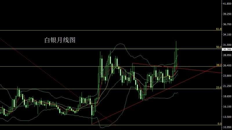 白银:下方22.35和22.5的多以及24.45的多减仓后止损跟进在27持有,上周五31.6的空减仓后止损跟进在31.5持有,今日的行情30.9空止损31.1,下方目标看30支撑,跌破的话看29.7和29.329支撑。