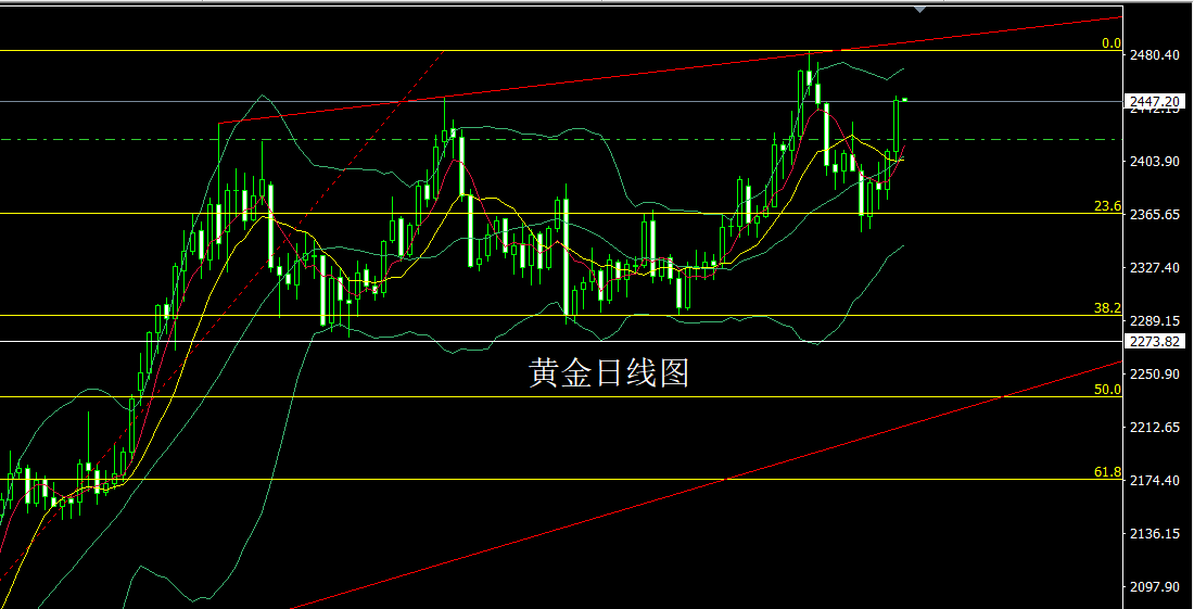 昨日黄金市场早盘开盘在2410.6的位置后行情先回落,日线最低给到了2403.4的位置后,受此伴随以色列的暗杀等避险因素影响行情强势拉升,日线最高触及到了2451.1的位置后行情整理,日线最终收线在了2447.2的位置后,日线以一根下影线长于上影线的大阳线收线,而这样的形态收尾后,今日的行情延续做多,点位上,下方1996多和2028的多,止损跟进在2250持有,今日2436附近激进多,保守2433多止损2429.目标看2451,破位看2458和2465.破位的话上方看前期历史高点2472和2484压力。