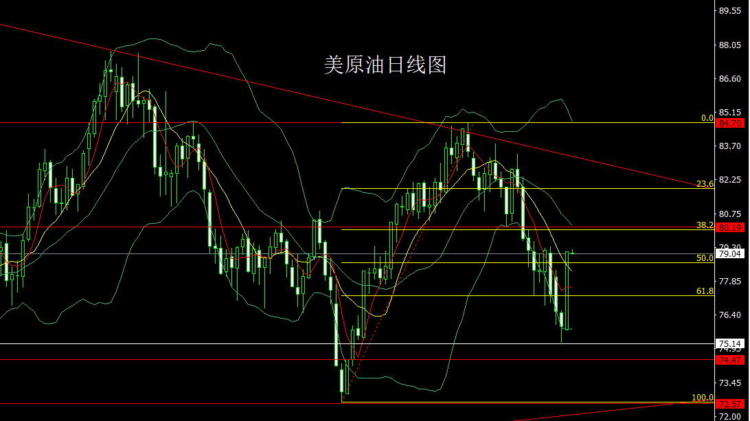 美原油市场昨日开盘在75.77的位置后行情小幅回踩给出75.72的位置后行情强势拉升,日线最高触及到了79.12的位置后行情收线,日线以一根基本饱和大阳线收线,而这样的形态收尾后,今日的行情78多止损77.5,目标看79.15.破位看80和80.6-81.