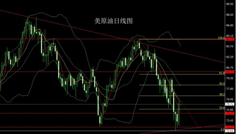 美原油:今日的行情74.7多止损74.1,目标看75.7和76.2.破位看76.7和77