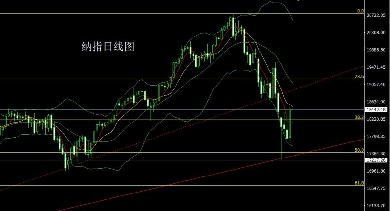 纳指市场昨日开盘在17776.9的位置后行情先回落给出低点17634.41的位置后行情强势拉升,日线最高触及到了18486.42的位置后行情整理,日线最终收线在了18453.76的位置后行情以一根下影线较长的大阳线收线,而这样的形态收尾后,今日的行情18150多止损18100,目标看18500和18600和18700-18800.
