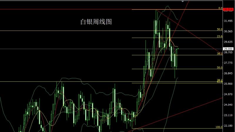 白银市场上周开盘在27.423的位置后行情先拉升给出28.054的位置后行情快速回落,周线最低给到了27.152的位置后行情强势拉升,周线最高触及到了29.024的位置后行情整理,周线最终收线在了29.011的位置后行情以一根下影线很长的大阳线收线,而这样的形态收尾后,本周回踩延续多,点位上,今日的行情28.7多止损28.5,目标看29.1和29.4和29.6.