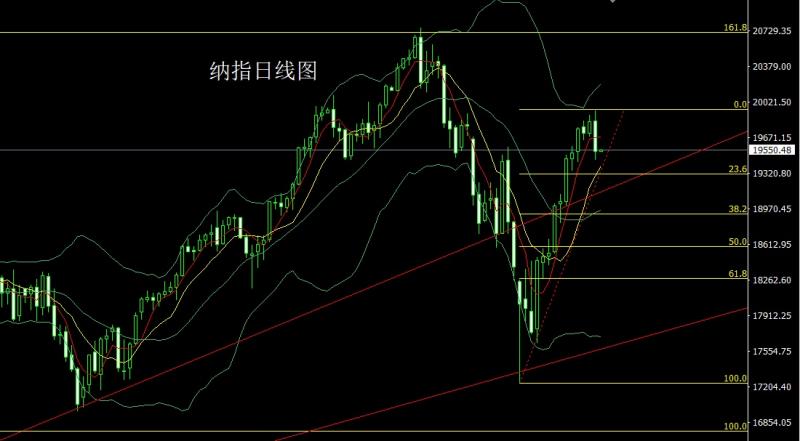 纳指市场昨日小幅高开在19837.64的位置后行情先回落给出19774.77的位置偶行情震荡拉升,日线最高触及到了19939.42的位置后行情强势回落,日线最低给到了19449.46的位置后行情整理日线最终收线在了19530.79的位置后行情以一根上下影线基本等长的大阴线收线,而这样的形态收尾后,今日的行情回踩空,点位上,今日19700空止损19750,下方目标看19449,跌破看19400和19360和19300-19200.
