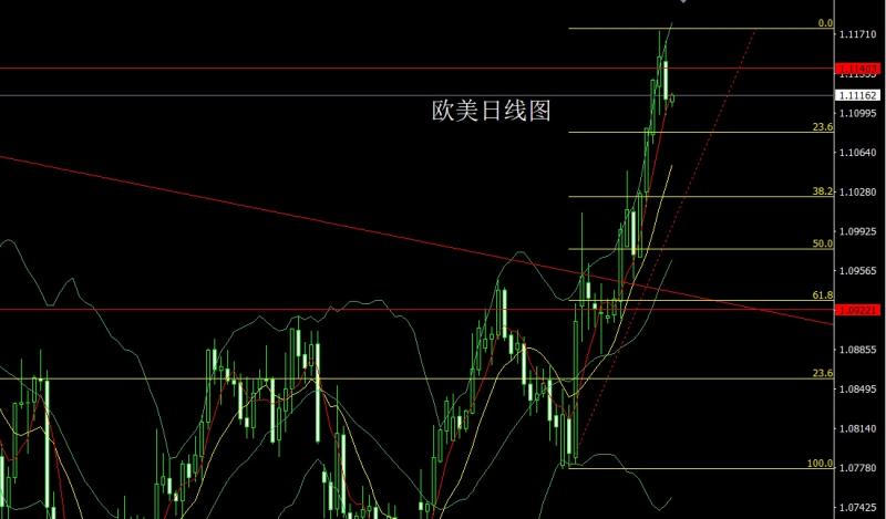 欧美市场昨日早盘小幅低开在1.11461的位置后行情先拉升给出1.11651的位置后行情强势回落,日线最低给到了1.10970的位置后行情整理,日线最终收线在了1.11119的位置后行情以一根上影线稍长于下影线的大阴线收线,而这样的形态收尾后今日1.11400空止损1.11600,下方目标看1.11100和1.10900和1.10700.