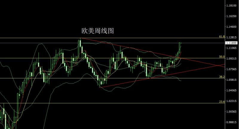 欧美市场昨日开盘在1.10274的位置后行情小幅回踩给出1.10130的位置后行情强势拉升,周线最高触及到了1.12014的位置后行情整理,周线最终收线在了1.11933的位置后行情以一根下影线较长的大阳线收线,而这样的形态收尾后,周线有效破位压力,本周市场延续多,点位上,今日1.11550多止损1.11350目标看1.12050.破位看1.12300和1.12500.