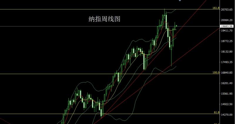 上周纳指市场开盘在19534.55的位置后行情先回落给出19422.73的周线低点后行情强势拉登,周线最高触及到了19941.56的位置后行情回落,周线最终收线在了19695.56的位置后,周线以一根上影线长于下影线的纺锤形态收线,而这样的形态收尾后本周如果先回落19500多止损19450,目标看19650和19800.
