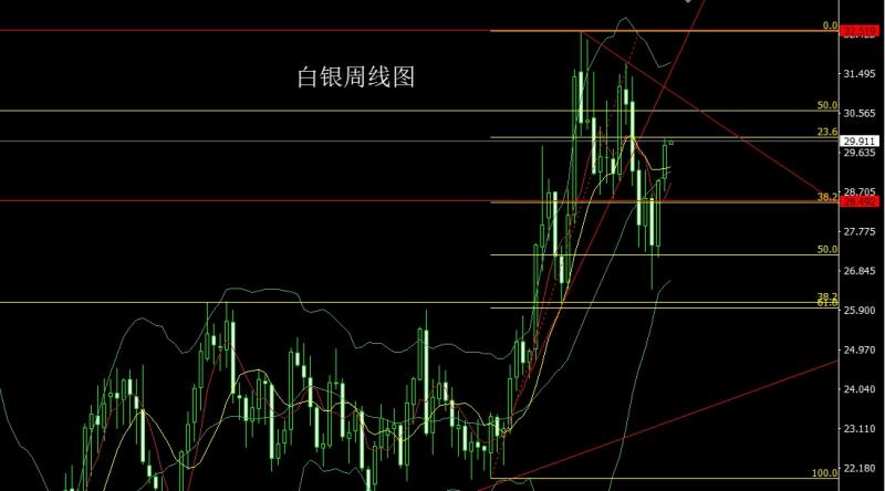 白银市场上周开盘在29.031的位置后行情先回落,周线最低给到了28.707的位置后行情快速拉升,周线最高触及到了29.975的位置后行情快速回落,二次给出低点附近后拉升,周线最终收线在了29.812的位置后行情以一根下影线长于上影线的大阳线收线,而这样的形态收尾后,本周市场有继续看多需求,点位上,今日的行情29.45多止损29.25,目标看30,破位看30.25和30.5-30.7.