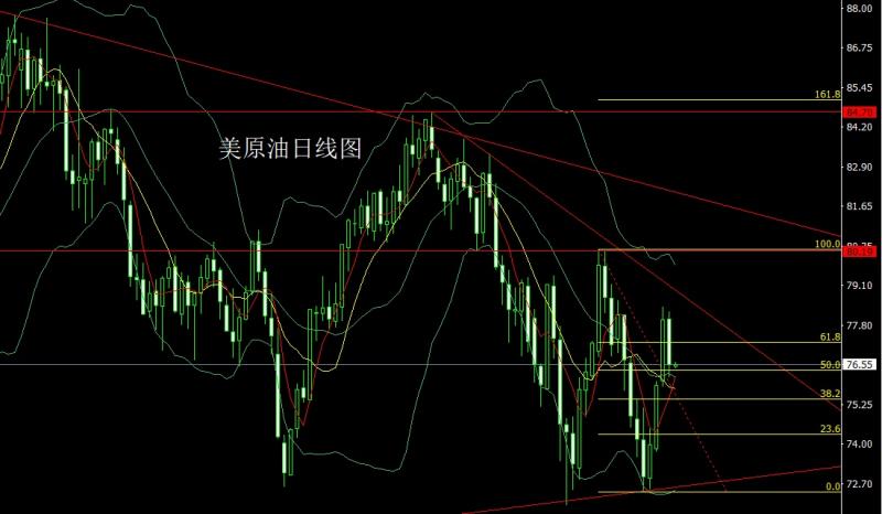 美原油:今日77.3空止损77.8,下方目标看76.5和76,跌破75.5支撑点。