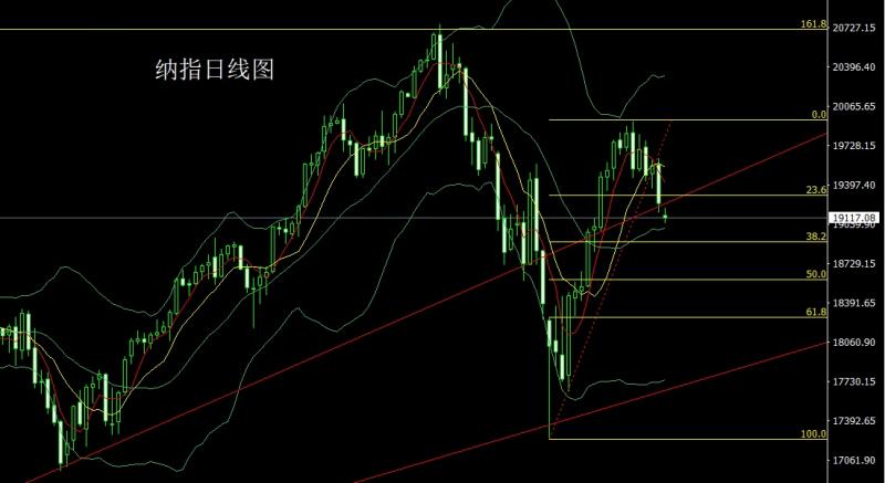 纳指市场昨日开盘在19566.84的位置后行情先回落给出19488.37的位置后行情拉升,日线最高触及到了19621.33的位置后行情强势回落,日线最低给到了19159.24的位置后行情整理,日线最终收线在了19239.89的位置后行情以一根下影线稍长于上影线的大阴线收线,而这样的形态收尾后,今日的行情有回落压力,点位上,今日19350空止损19400,下方目标看19200和19150,跌破看19100和19000。