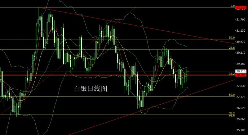 昨日白银市场早盘开盘在28.387的位置后行情先回落给出28.3的位置后行情拉升日线最高触及到了28.865的位置后行情受到压力强势回落,日线最低给到了28.054的位置后行情尾盘二次拉升,日线最终收线在了28.664的位置后行情以一根下影线长于上影线的中阳线收线,而这样的形态收尾后,前日28.05和昨日28.1的多减仓后止损跟进在28.1持有,今日的行情先拉升给出29.1空止损29.3,下方目标看28.6和28.3.