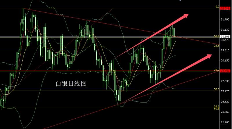 白银:今日的行情如果先回落给出30.4多止损30.15,目标看30.9和31.25.