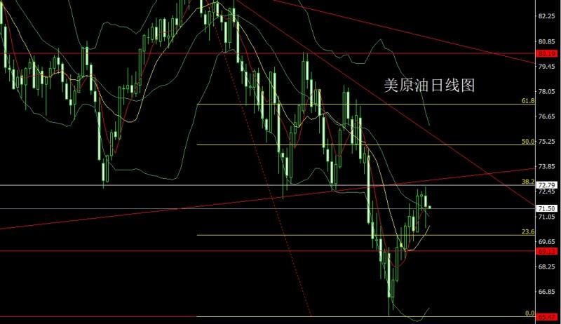 美原油:,昨日70.5的多减仓后止损跟进在70.3持有,今日70.8多止损70.3,目标看俺71.6和72.7.破位看73.2和73.8-74.