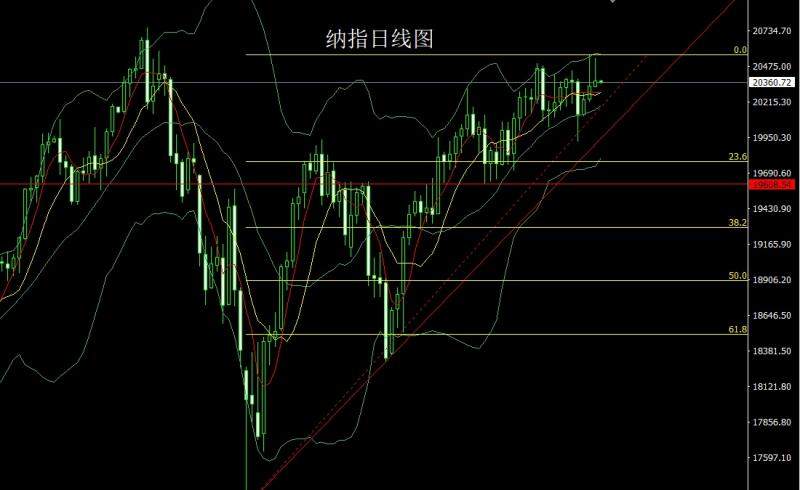 昨日纳指市场早盘开盘在20326.68的位置后行情直接拉升,日线最高触及到了20533.77的位置后行情冲高回落,日线最终收线在了20366.16的位置后行情以一根上影线极长的倒锤头形态收线,而这样的形态收尾后孕线倒锤头后今日回踩高空,点位上,昨日20520的空减仓后止损跟进在20520持有,今日的行情20460空止损20520,下方目标看20320,跌破的话看20250和20200-20100.