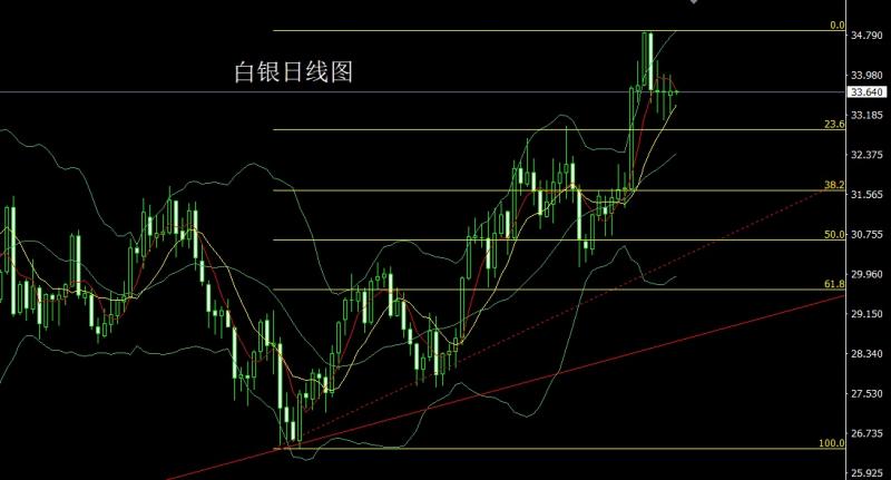 白银市场昨日开盘在33.565的位置后行情先回落,日线最低给到了33.206的位置后行情拉升,日线最高触及到了33.99的位置后行情整理,日线最终收线在了33.659的位置后行情以一根上下影线等长的长脚十字星形态收线,而这样的形态收尾后,下方30.8的多和30.9的多减仓后止损跟进在31.5持有,今日如果先拉升给出34.4空止损34.7,下方目标看33.6和33.4和33.2.