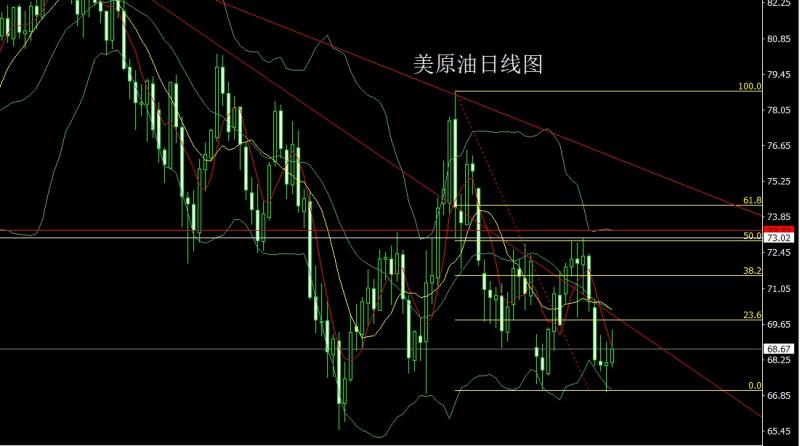 美原油:今日先回落68.1多止损67.6,目标看68和68.45,破位看69和69.3.