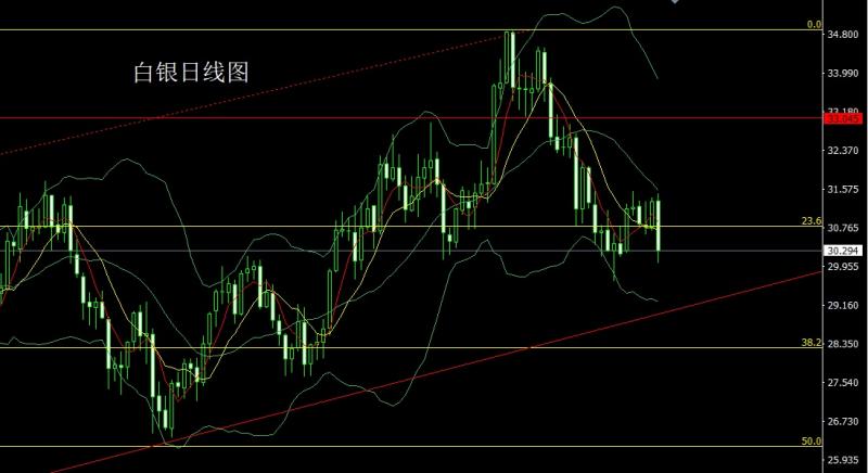 白银:今日30.75空止损30.95,下方目标看30.2和30关口跌破看29.8和29.6前期低点。
