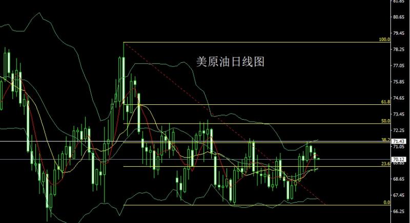 美原油市场昨日开盘在70.61的位置后行情先拉升给出70.91的位置后行情强势回落,日线最低给到了69.17的位置后尾盘拉升,日线最终收线在了70.17的为后行情以一根下影线很长的锤头形态收线,而这样的形态收尾后,昨日69.2的多减仓后止损跟进在69.1持有,今日先回落69.6多止损69.1,目标看70.7和71,破位看71.5和72-72.7.