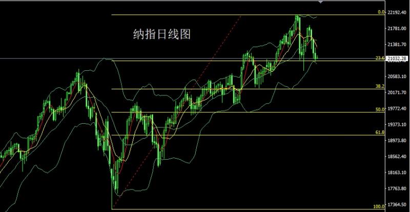 纳指市场前日开盘在21160.94的位置后行情先拉升给出21304.06的位置后行情回落,日线最低给到了20959.83的位置后行情整理,日线最终收线在了21012.58的位置后行情以一根上影线很长的中阴线收线,人这样的形态收尾后,今日的行情有继续回落的需求,点位上,今日21200空止损21250,下方目标看20950,跌破看20850和20800.