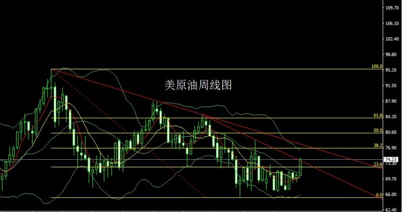 美原油市场上周开盘在70.38的位置后行情小幅回踩70.31的位置后行情受到相关商品拉升的影响强势拉升,周线最高触及到了74.5的位置后行情整理,日线最终收线在了74.23的位置后行情以一个略带影线的饱和大阳线收线,而这样的形态收尾后,周线有效上破压力,今日的行情回踩延续多,点位上,今日73多止损72.5,目标看74和74.5,破位看75和75.5-76.