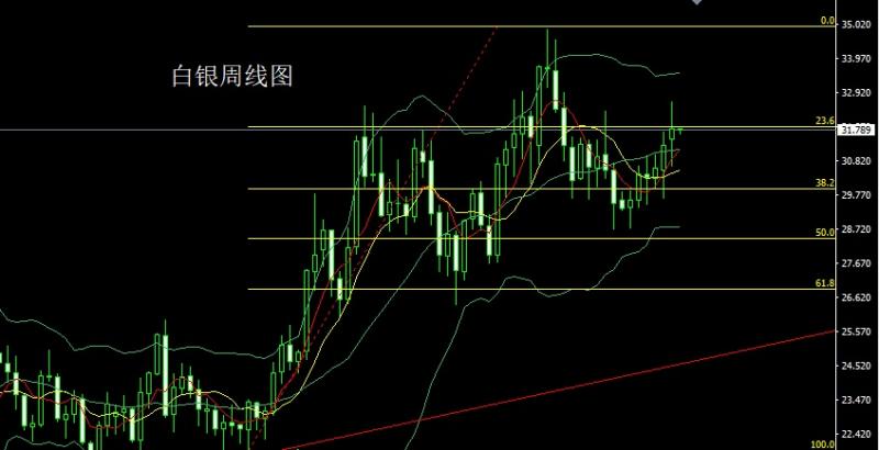 白银市场上周高开在31.474的位置后行情先回落,周线最低给到了30.662的位置后行情强势拉升,周线最高触及到了32.641的位置后行情尾盘回落,周线最终收线在了31.808的位置后行情以一根下影线稍长于上影线的长脚纺锤形态收线,而这样的形态收尾后,本周32.35空止损32.6,下方目标看31.7和31.3-31支撑离场。