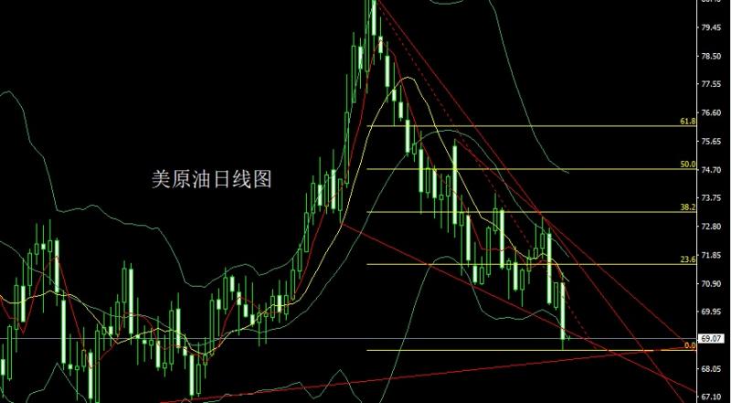 美原油市场昨日开盘在70.92的位置后行情先拉升给出71.25的位置后行情震荡回落,日线最低给到了68.67的位置后行情整理,日线最终收线在了69.04的位置后行情以一根上下影线等长的大阴线收线,而这样的形态收尾后,今日70空止损70.5,下方目标看69和68.6,跌破看68.3和68.