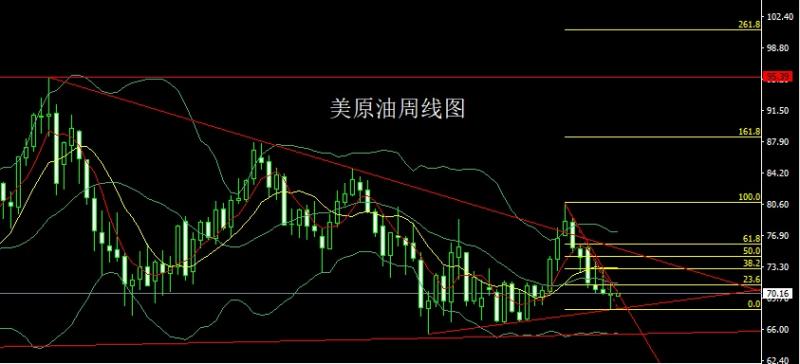 美原油市场上周开盘在70.08的位置后行情先拉升给出71.22的位置后行情收到本轮周线级别布林中轨压力回落,周线最低给到了68.3的位置后行情拉升,周线最终收线在了69.92的位置后行情以一根下影线稍长于上影线的长脚十字星形态收线,而这样的形态收尾后,周线构建搓揉整理区间,点位上,如果先拉升71空止损71.5,下方目标看69.8和69和68.5离场反手多。