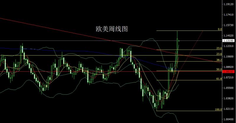 欧美市场上周开盘在1.09539的位置后行情先回落,周线最低给到了1.08768的位置后行情强势拉升,破位前一周高点后最高触及到了1.14744的位置后行情整理,周线最终收线在了1.13491的位置后行情以一根上影线稍长于下影线的大阳线收线,而这样的形态收尾后,今日1.12600多止损1.12300,目标看1.13500和1.14000和1.14700-1.15000.
