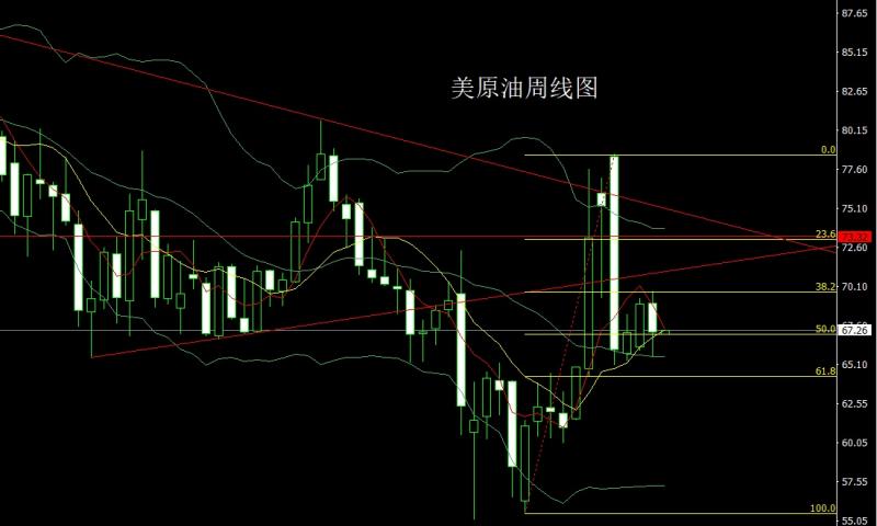 美原油市场上周开盘在69.03的位置后行情小幅拉升给出69.78的位置后行情强势回落,周线最低给到了65.57的位置后尾盘拉升,周线最终收线在了67.18的位置后行情以一根下影线极长的的大阴线收线,而这样的形态收尾后,今日68空止损68.5下方目标看67.2和66.5和66.