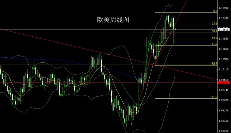 欧美市场上周开盘在1.17514的位置后行情小幅拉升给出1.17719的位置后行情强势回落,周线最低给到了1.13880的位置行情尾盘强势拉升,周线最终收线在了1.15945的位置后,周线以一根下影线极长的大阴线收线,而这样的的形态收尾后,本周1.15100多止损1.14900,目标看1.015600和1.15900和1.16200和1.16500.