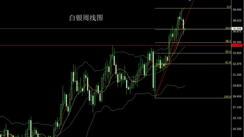 白银市场上周开盘在38.139的位置后行情先拉升给出38.355的位置后行情强势回落,周线最低给到了36.181的位置后尾盘拉升,周线最终收线在了37.008的位置后,周线以一根下影线极长的大阴线收线,而这样的形态收尾后,本周36.6多止损36.3,目标看37和37.3和37.6.