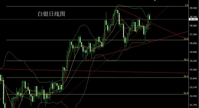 白银市场昨日开盘在38.87的位置后先拉升给出日线高点38.991的位置后行情强势震荡回落,日线最低给到了38.524的位置后行情整理,日线最终收线在了38.543的位置后,日线以一根上影线较长的中阴线收线,而这样的形态收尾后,上周五37.8的多减仓后止损跟进在38持有。今日38.8空止损39下方目标看38.5和38.35和38.2离场准备多。