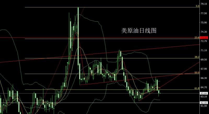 美原油市场昨日开盘在64.17的位置后行情小幅拉升给出64.21的位置后行情强势回落,日线最低给到了63.11的位置后行情拉升,日线最终收线在了63.67的位置后,日线以一根下影线很长的中阴线收线,而这样的形态收尾后,今日先拉升给出64空止损64.5,下方目标看63.5和63.1,跌破看62.8和62.5离场反手多。
