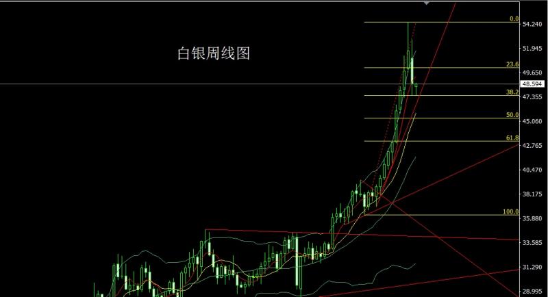 白银市场上周低开在50.992的位置后行情先拉升给出52.772的位置后行情强势回落,周线最低给到了47.477的位置后行情受到本轮上行斐波那契的38.2支撑整理,周线最终收线在了48.59的位置后周线以一根上影线长于下影线的大阴线收线,而这样的形态收尾后,下方37.8的多和38.8的多跟进在42持有。今日47.65多止损47.45,目标看48.1和48.35和48.6-49