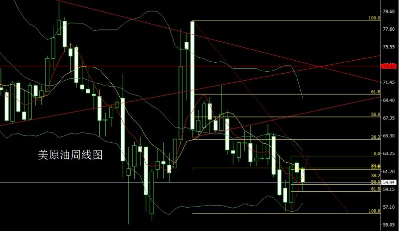 美原油市场上周高开在61.52的位置后行情小幅拉升给出61.72的位置后行情强势震旦回落,周线最低给到了58.96的位置后行情尾盘拉升,周线最终收线在了59.94的位置后,周线以一根下影线很长的大阴线收线,而这样的形态收尾后,今日回踩60.5依旧空止损61,下方目标看59.5和58.9,破位的话看58.5和58.