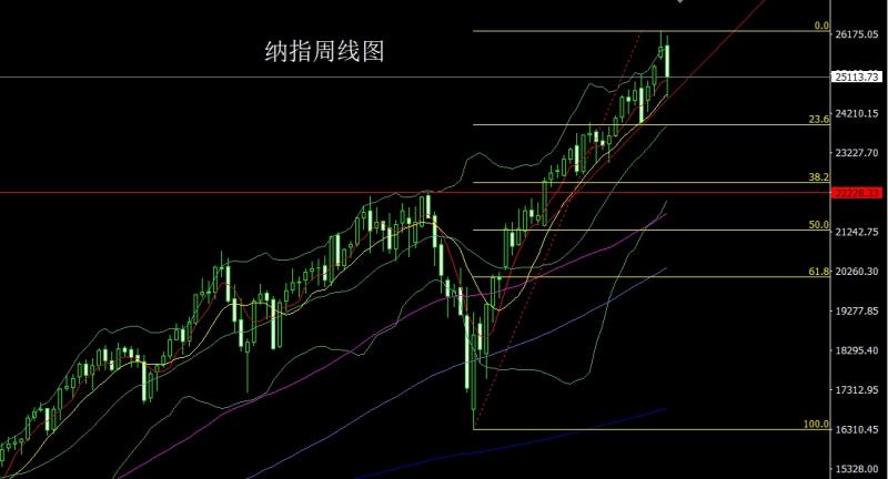 纳指市场上周开盘在25888.76的位置后行情先拉升给出周线高点26134.55的位置后行情强势震荡回落,到周五周线最低给到了24593.14的位置后行情受到周线级别10日均线支撑尾盘拉升,周线最终收线在了25113.73的位置后,周线以一根下影线长于上影线的大阴收线,而这样的形态收尾后,今日24750多,止损24690,目标看24900和25000和25100.