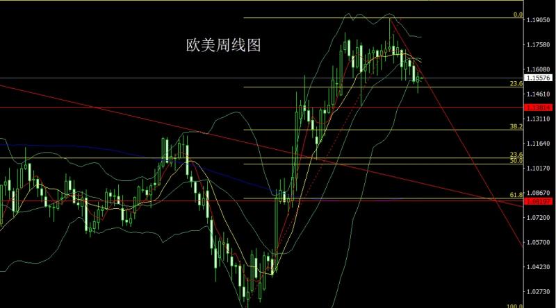 欧美市场上周开盘在1.15328的位置后行情先回落,周线最低给到了1.14663的位置后行情在基本面的影响下开始拉升过程,到尾盘周线最高触及到了1.15913的周线高点后行情受到本轮日线级别布林中轨压力整理,周线最终收线在了1.15632的位置后,周线以一根下影线很长的锤头形态收线,而这样的形态收尾后,本周行情有看多需求,点位上,今日如果先回落1.15150多止损1.14950,目标看1.15500和1.15700和1.16000.