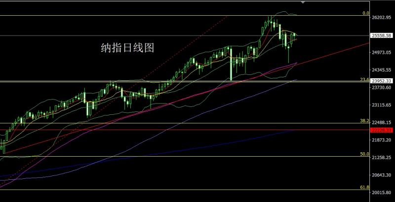 纳指市场昨日开盘在25623.38的位置后行情小幅拉升给出25669.48的位置后行情强势震荡回落,日线最低给到了25370.78的位置后尾盘拉升,日线最终收线在了25548.44的位置后,日线以一根下影线很长的锤头形态收线,而这样的形态收尾后,今日25400多止损25340,目标看25550和25660和25730.