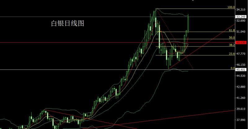 昨日白银市场昨日开盘在51.205的位置后行情先回落给出50.826的位置后行情展开强势拉升,日线最高触及到了53.667的位置后整理,日线组织收线在了53.249的位置后,日线以一根上下影线等长的大阳线收线,而这样的形态收尾后,下方37.8的多和38.8的多跟进在42持有昨日50.9的多减仓后止损跟进在51.2持有,今日52.3多止损52,目标看53.2和53.5和53.7,破位看54和54.3.