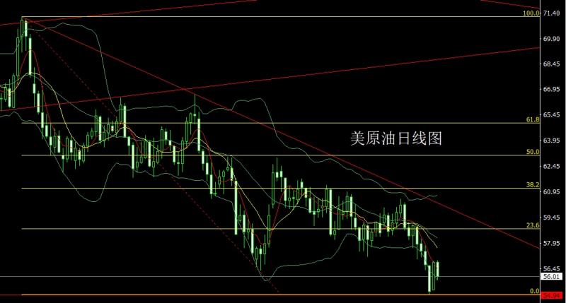 美原油市场昨日开盘在56.85的位置后行情小幅拉升给出56.95的位置后行情震荡回落,日线最低给到了55.81的位置后行情整理,日线最终收线在了56.01的位置后,日线以一根下影线稍长的大阴线收线,而这样的形态收尾后,今日56.7空止损57.2下方目标看56和55.8,跌破看55.2和55.