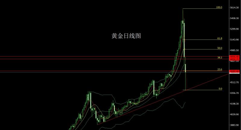 昨日黄金市场早盘低开在4779.2的位置后行情回补缺口给出4886的日线高点后行情强势回落,日线最低给到了4398.7的位置后行情受到本轮极限上行趋势线支撑强势拉升,给出4814.2的位置后整理,日线以一根4659.9的位置后日线以一根下影线极长的类锤头形态收线,而这样的形态收尾后,昨日4400的多减仓后止损依旧放到4430,今日的行情4485多止损4479,跌破的话下方4445多止损4439,目标看4560和4650和4700和4780和4850.
