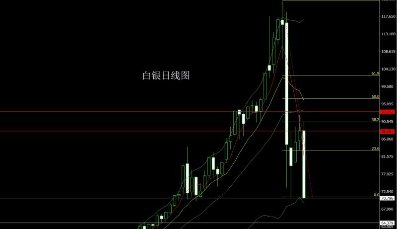 白银市场昨日开盘在88.151的位置后行情先拉升给出90.4的位置后行情受到本轮下行斐波那契的38.2的压力后行情强势回落,日线最低给到了70.49的位置后行情整理,日线最终收线在了70.796的位置后日线以一根上影线稍长的大阴线收线,而这样的形态收尾后,日线完成N字破位,今日的行情78.65空止损78.9,目标看73和70.5,跌破看69和68离场准备多。