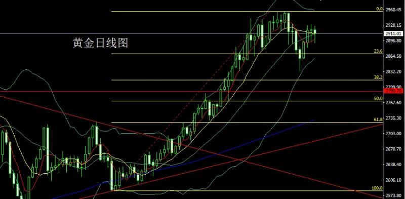 昨日黄金市场早盘开盘在2918.7的位置后行情先拉升,日线最高触及到了2928.8的位置后行情快速回落,日线最低给到了2891.2的位置后行情拉升,日线最终收线在了2911的位置后行情以一根下影线很长的锤头形态收线,而这样的形态收尾后,今日的行情先拉升给出2926空止损2931下方目标看2910和2900和2892-2890附近离场反手多。